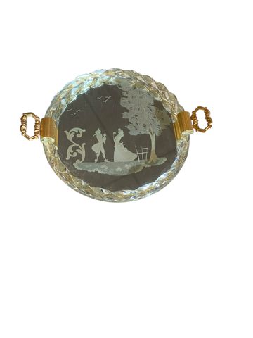 1940's Venetian Murano Mirrored Trinket Tray w Etched Image 11.5"Dia