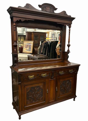 Late Victorian Early Edwardian Mahogany Sideboard w/Beveled Mirror, H. 86 in.