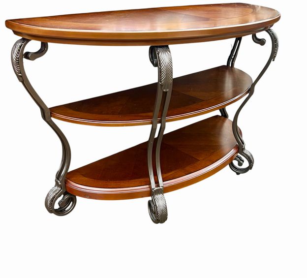Classical Style Three Tier Wood & Scrolling Metal Console