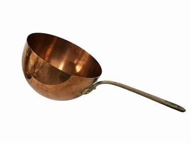 Copper French Zabaglione pot, 5" h, 15.5" l, 8" diam.