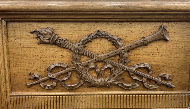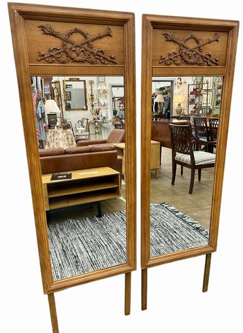 Pair United Mirrors w/Louis XVI Style Motif, H. 49.5 in. x W. 19.5 in.