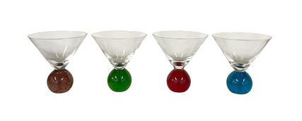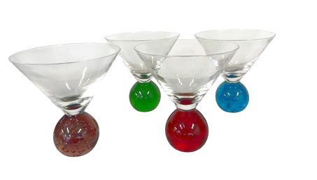 Set of 4 martini glasses w/ colored bases, 4.25" h