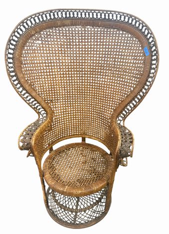 Natural caned wicker rattan Peocock chair, 55" h, 36" w, 20.75" d