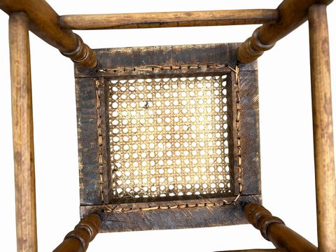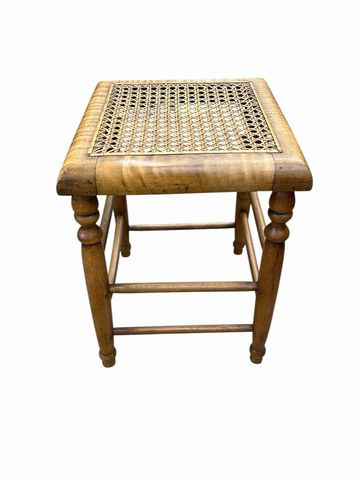 American Tiger Maple & Caned Stool, 19th century, H. 18.5 in. x 13x13 in.