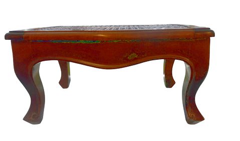 Antique Louis XV-style carved wood footstool w/ caned top, 7.25" h, 14.5" w, 10.