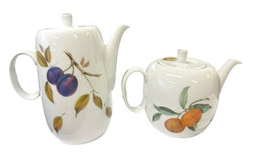 Royal Worcester "Evesham Gold" porcelain coffee and tea pots, 5.25" & 7.5" h