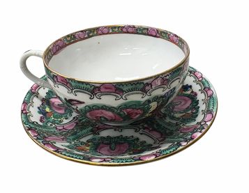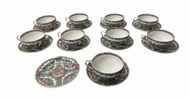 Set of 9 Chinese Famille Rose Medallion porcelain cups/saucers + 1 saucer
