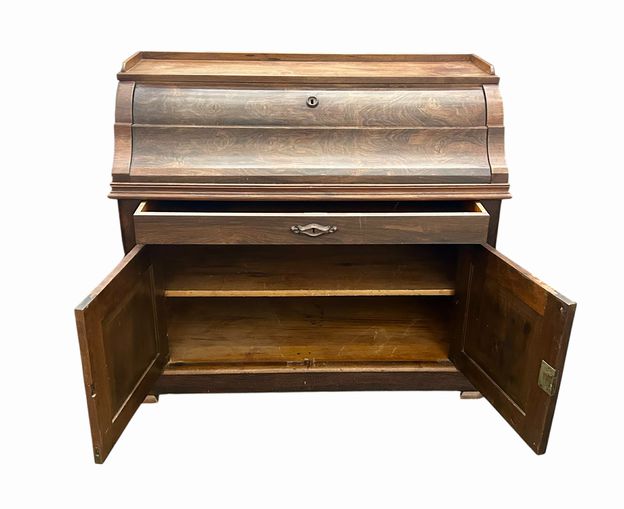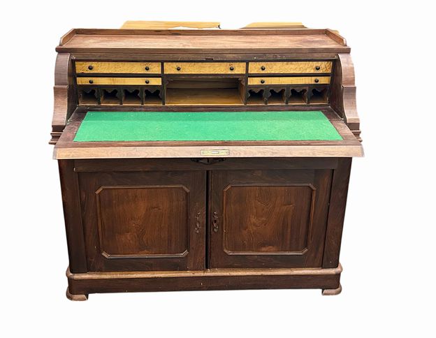 American Victorian Rosewood & Maple Drop-Front Desk, No Key (secondary wood is polar), H. 41 in. x W. 45 in. x D. 20.5 in.
