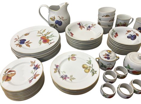 61-piece dinner set of Royal Worcester "Evesham Gold" porcelain dishes