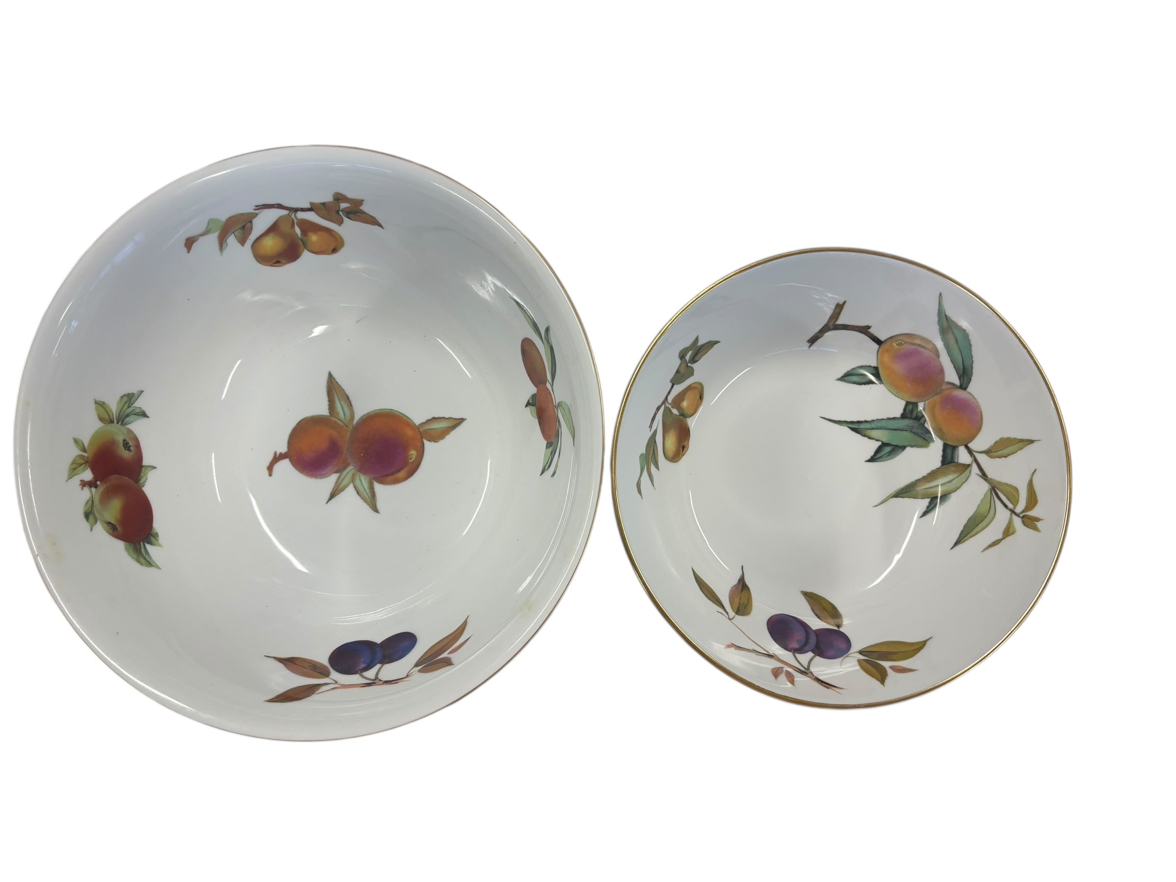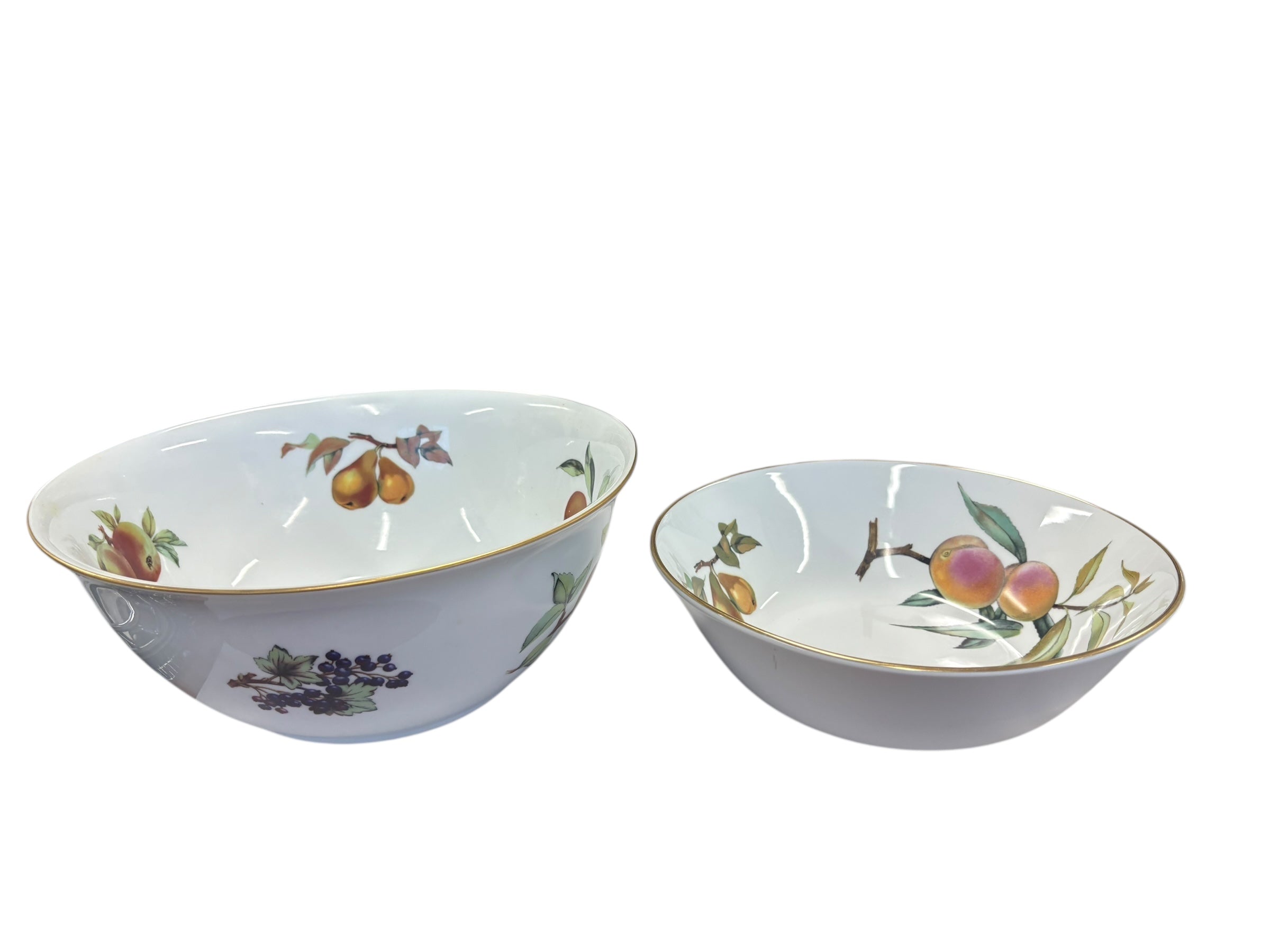 Set of 2 graduated Royal Worcester "Evesham Gold" porcelain bowls, 3" & 4.5" h, 9.75" & 11.5" diam.