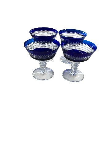 Set Of 4 Dorflinger Renaissance Cobalt Blue Sorbet Pedestal Bowls 5x4"