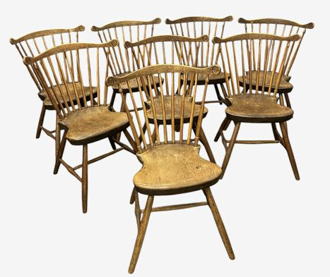 8 American Mixed Woods Fan Back Windsor Side Chairs, ca. 1830,