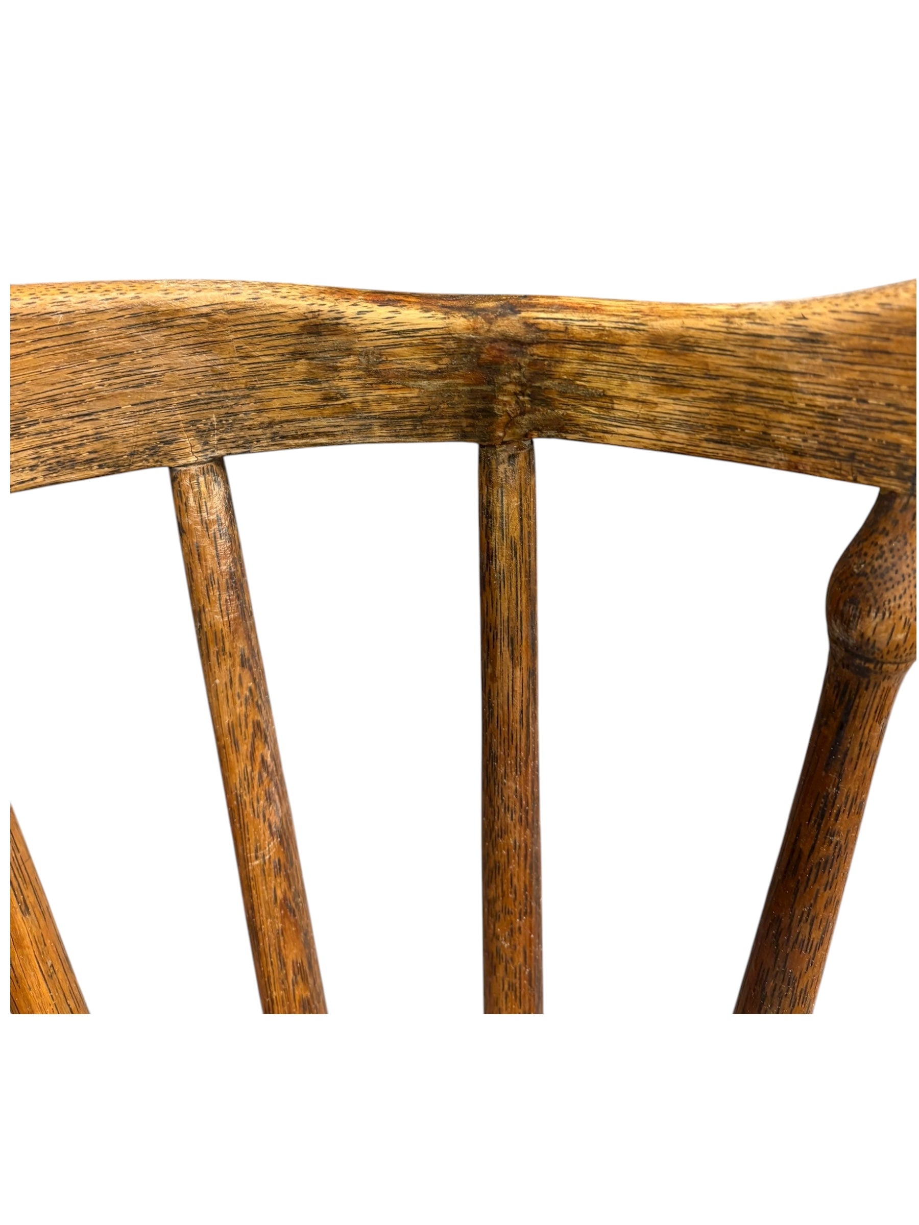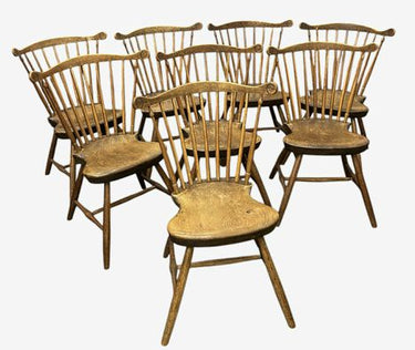 8 American Mixed Woods Fan Back Windsor Side Chairs, ca. 1830, H. 32 in. x W. 23 in. x D. 18.25 in. (as is) Two with crest rail damage, and plank seat damage. Overall in good condition.