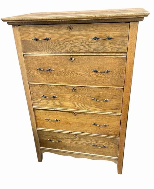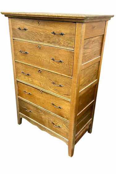 American Oak 5 Drawer Tall Dresser, ca. 1910