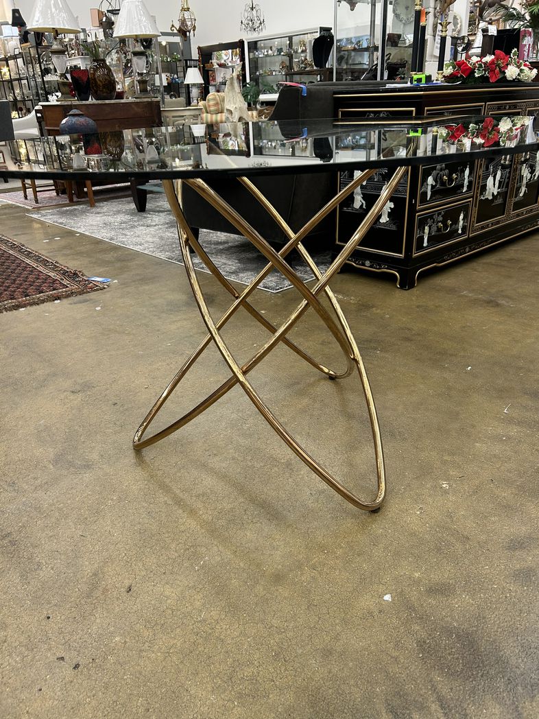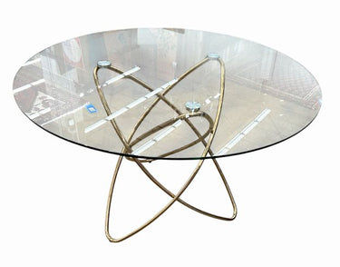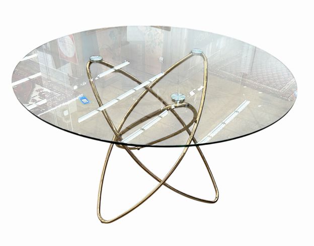 Brass & 47 in. Round Glass Top Dining Table, H. 29.5 in.