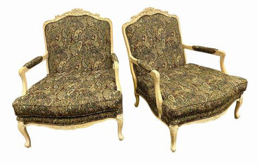 Pair Louis XV Style Arm Chairs, H. 37 in. x W. 33 in. x D. 29 in.