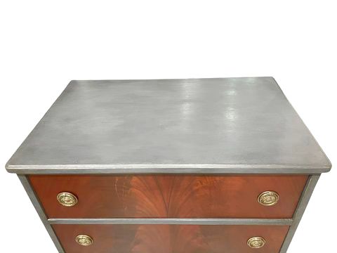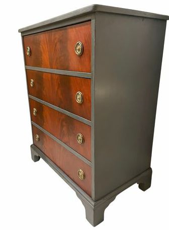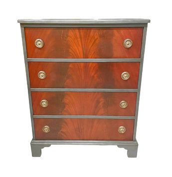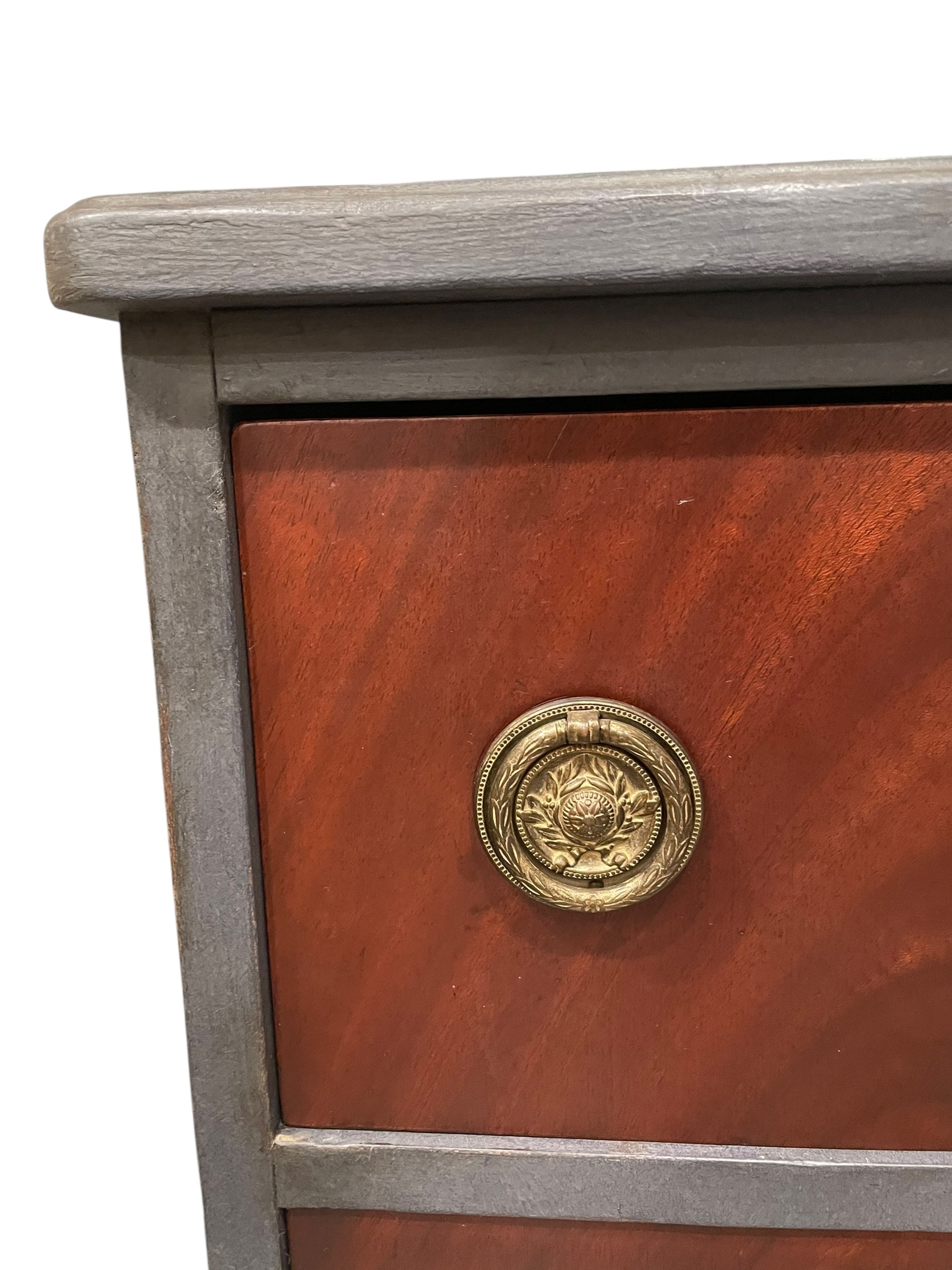 Vintage dresser/secretary gray-blue w/ flame mahogany drawers, newly finished, 3