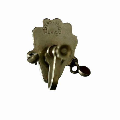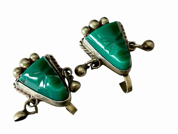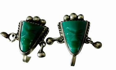 Pair Mexican Sterling Silver Earrings with/Carved Green Onyx Mask