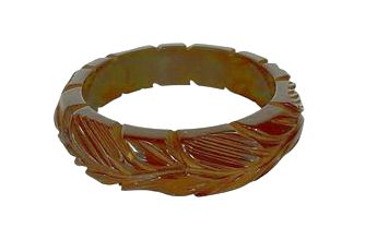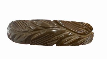 Vintage chocolate brown deeply carved Bakelite bangle, 2.5" diam. (inner diam.)