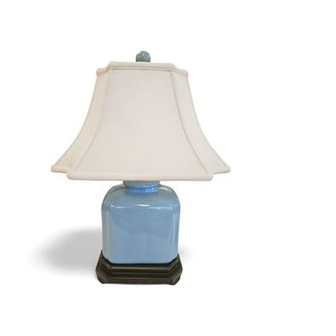 Asian-style light blue square ceramic lamp w/ beige shade, 21.5" h