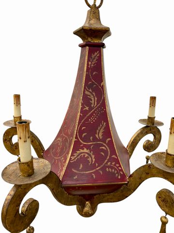 Continental Style Painted & Gilt 5 Arm Tole Chandelier,29 in. x 24 in. Diam.