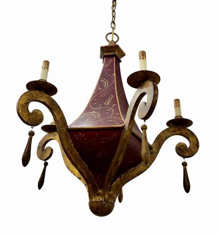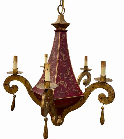 Continental Style Painted & Gilt 5 Arm Tole Chandelier,29 in. x 24 in. Diam.