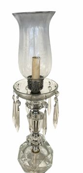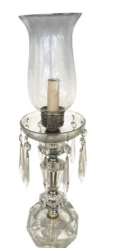 PAIR of glass electric hurricane lamps w/ crystals, 17.75" h