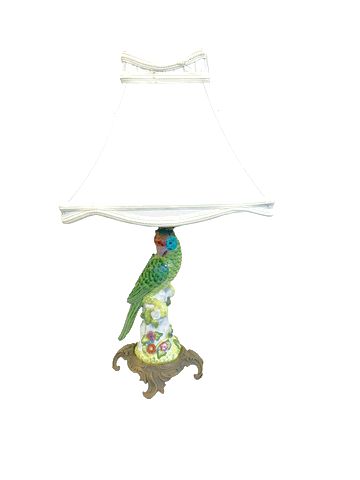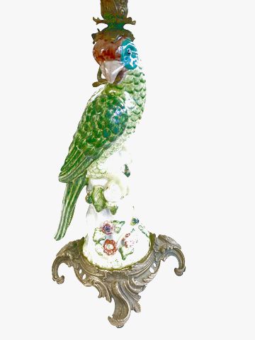 Pair oF Porcelain Parrot Table Lamps w/Gilt & Bronze 26x12"