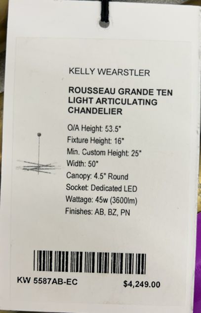 Rousseau 50" Wide LED Crystal Ten Light Articulating Chandelier, Canopy 5" Round Antique-Burnished Brass
