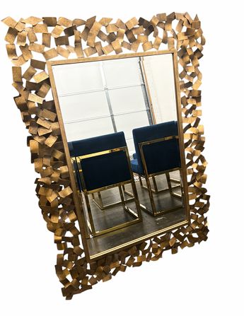 Large Uttermost Capulin beveled mirror in antiqued gold leaf frame, 54.5" h x 38