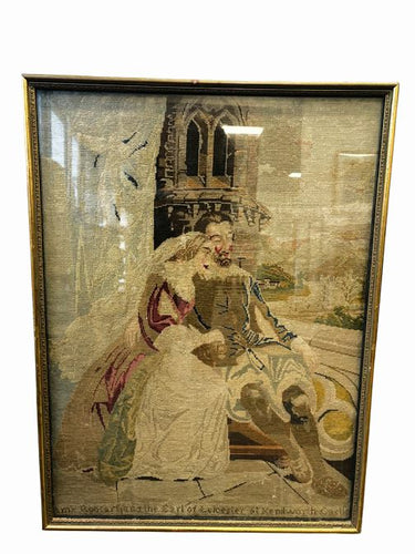 1868 Antique Needlepoint Amy Robstar and Earl of Leichester 32'H x 24"w