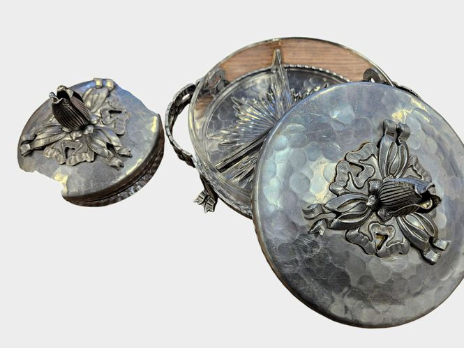 2 Robert Kent Hammered Covered Serving Dishes, (1)4.5 "h x 8"w