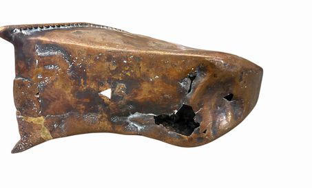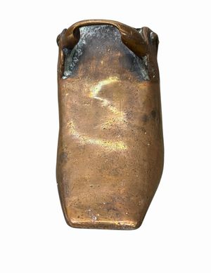 Antique Spanish Colonial copper alloy slipper stirrup, 5.5" h, 10" w, 4.25" d