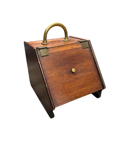 Antique wood coal scuttle box w/ brass details, 10.5" h, 13" w, 14" d