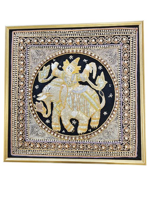 Burmese Kalaga Framed Embroidered and Beaded Tapestry 21"sq