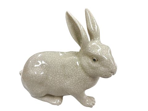 Ceramic rabbit figurine w/ crackle glaze finish, 8" h, 9" w, 4" d