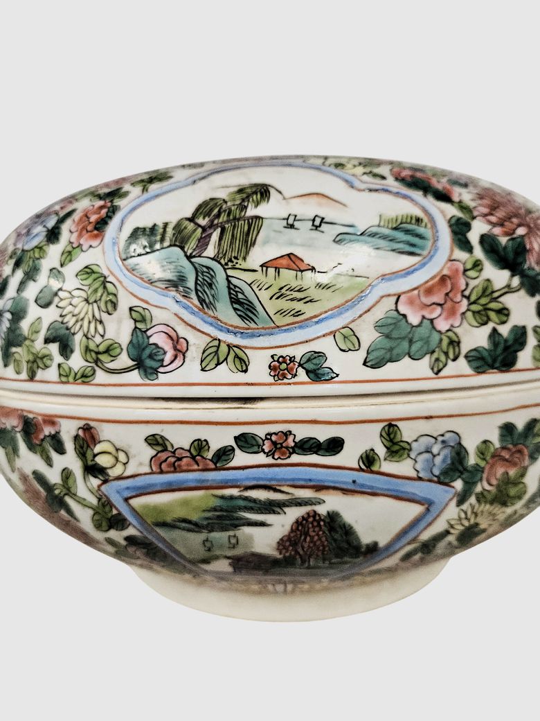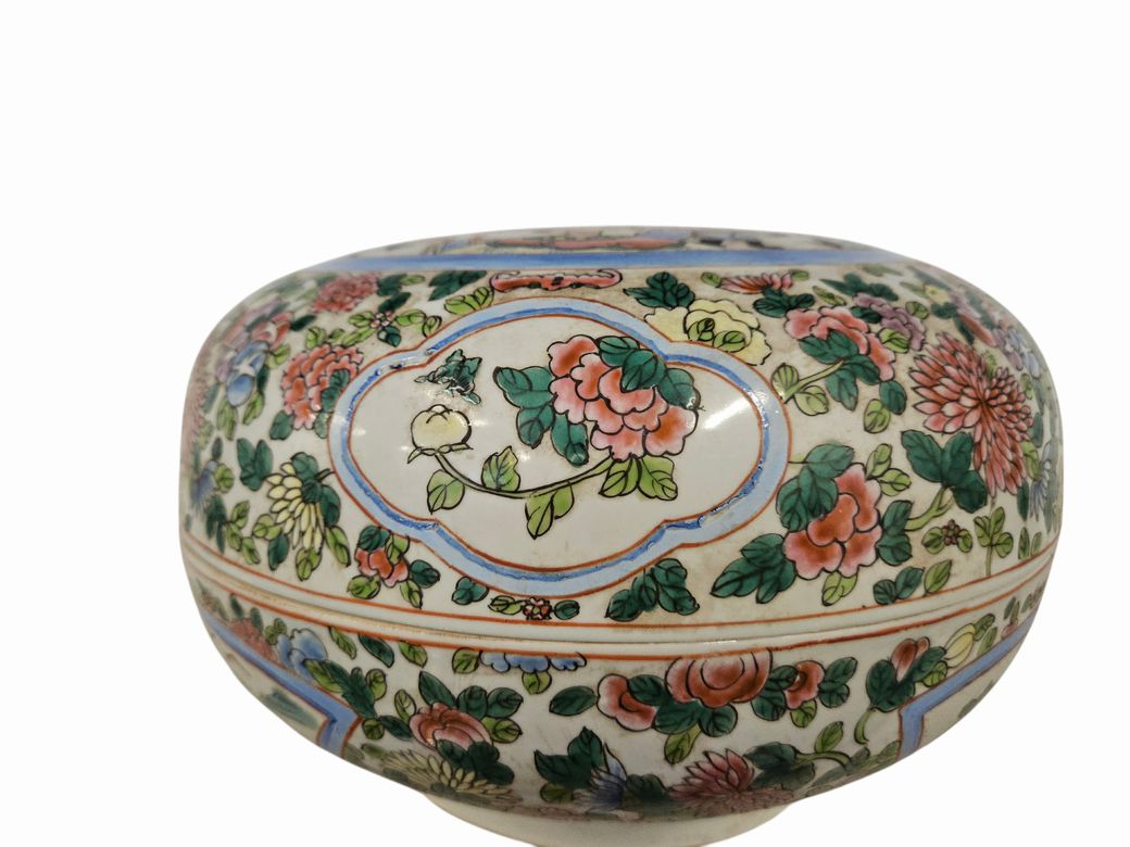 Chinese Famille Rose Lidded Container 7"h x 10"dia