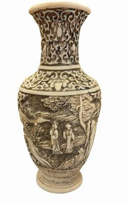 Chinese faux ivory cinnabar-style vase, 8.25"