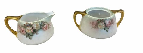 Vintage Bavarian handpainted creamer and sugar (missing lid), approx. 2.5" h