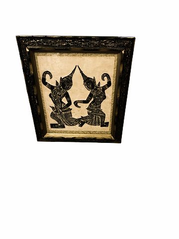 Framed Thai Temple Dancer/Rice Paper Rubbing 27x24"