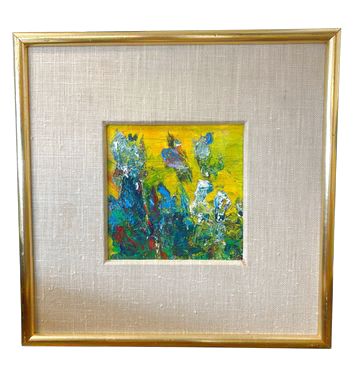 Gold framed "Garden by the Sea," original acrylic on board by Patricia N. Harris, 11.5" x 11.5"