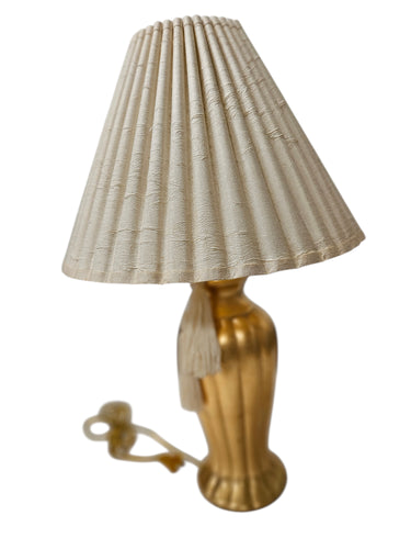 Goldtone Floor Lamp with Unique Shade, Tassle 26"h x 14"dia