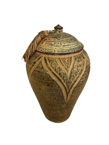 Handmade Stoneware Lidded Urn 11.5"Hx5"Dia