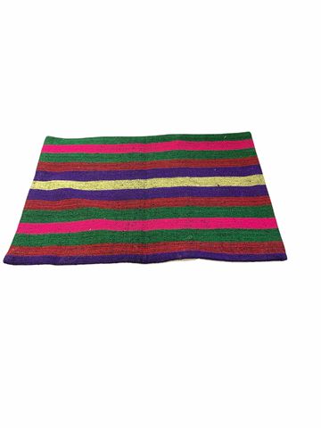 Handwoven Flat-Woven Kilims Turkish Pillow Case Green Blue & Fuchsia 15x14"