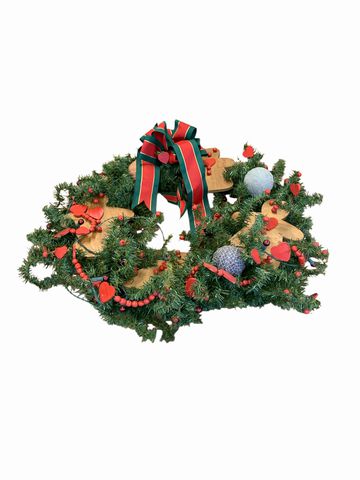 Holiday Wreath w/Yarn Balls,Wooden Ginger Bread Men & Lights 27"rd.