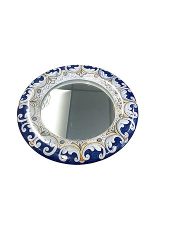 Italian/Deruta Artist Singed Majolica Blue Mirror 10"rd.