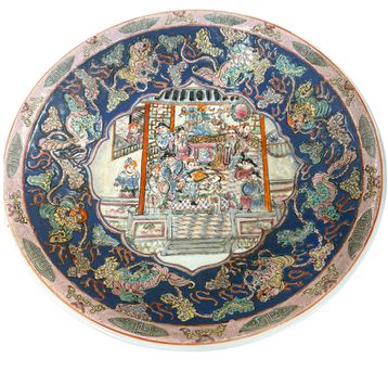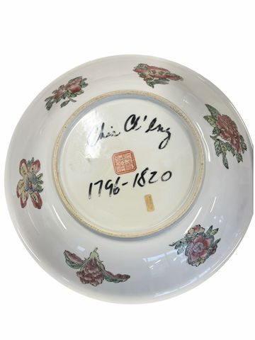 Large antique famille rose shallow porcelain bowl, 2.75" h, 14.25" diam.