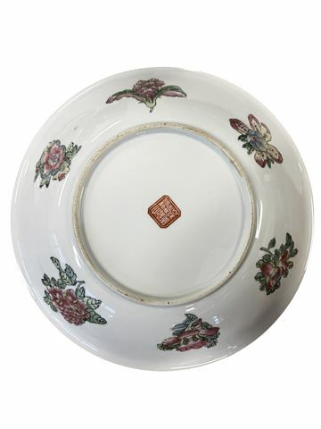 Large antique famille rose shallow porcelain bowl, 2.75" h, 14.25" diam.