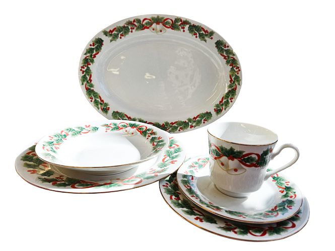 Large Sango Set "Noel" Dinnerware, serving 16 plus Serving Pcs.