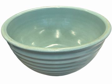 Large vintage seafoam green ceramic bowl, likely Bauer, 7" h, 14.25" diam.